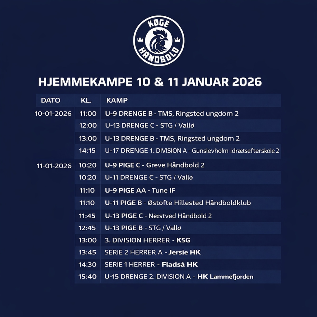 HJEMMEKAMPE D.10 & 11 JANUAR 2026